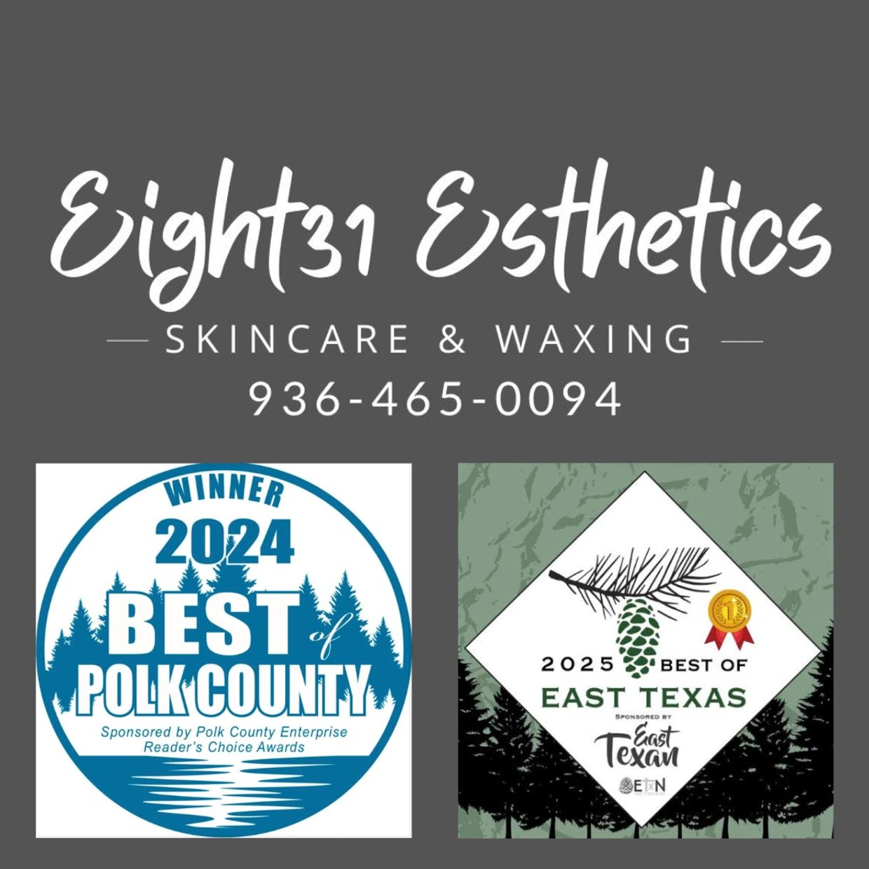 At Eight31 Esthetics, we combine award-winning expertise with cutting-edge techniques to deliver personalized skin-rejuvenation that truly transforms. From our serene, spa-like studio to our medical-grade products and advanced technologies, every detail is engineered for your comfort and results. Voted Best of Polk County 2024 and Best of East Texas 2025, our passionate team guides you through every step—from in-clinic treatments to at-home care—so you achieve lasting radiance. Plus, we back every service with an industry-leading satisfaction guarantee—see visible results after your first treatment, or we’ll make it right.